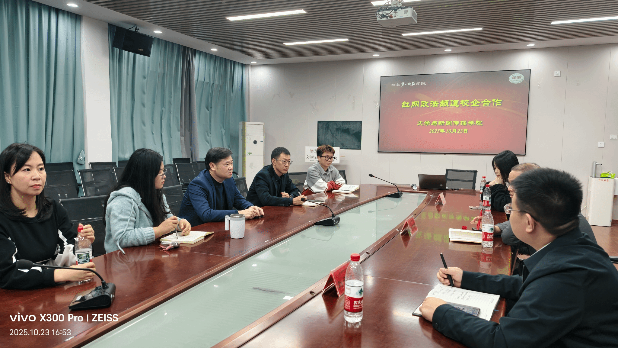 为深化产教融合,创新人才培养模式,10月23日下午,学院与红网政法频道举行校企合作座谈会。会议由张惠副院长主持,与会人员有红网政法频道主任曾鹏辉、营销总监刘子奕、红网记者肖依诺、学院书记刘立勇、副书记李豪杰、网媒系系主任谢亚可及相关教师代表。