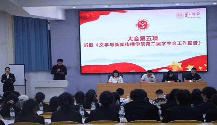 会上,我们第二届学生会执行主席邓宝彬代表第二届学生会作题为《厚德博学担使命,文以明道启新章,在服务文化强国建设中彰显文传学子的青春担当》的工作报告。报告指出,学生会聚焦思想引领、组织改革等六大领域体系化推进工作,在强化价值引导、激发组织活力、服务成长成才等方面成效显著,为学院高质量发展和学校“四个一师”建设注入澎湃青春动能。报告还就未来工作提出明确方向,强调将持续深化组织改革,拓展服务领域,强化桥梁纽带作用,引领广大同学在文化强国建设中贡献青春智慧与力量。
