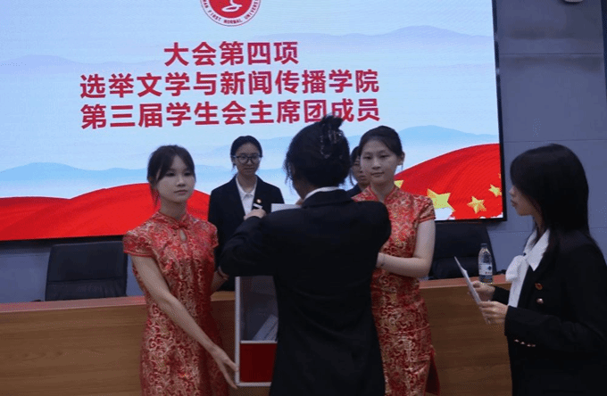 第二次全体会议审议并一致表决通过了我们2025—2026学年学生会成员候选人名单及第三次学生代表大会常任代表委员会委员候选人名单。大会采用差额选举方式,成功选举出太阳成集团122cc第三届学生会主席团成员:曾琳、陈玉湘、滕佳。同时,宁悦等15名同学当选为太阳成集团122cc第三次学生代表大会常任代表委员会委员。第三次全体会议报告宣布第三届学生会执行主席的选举结果,曾琳当选。