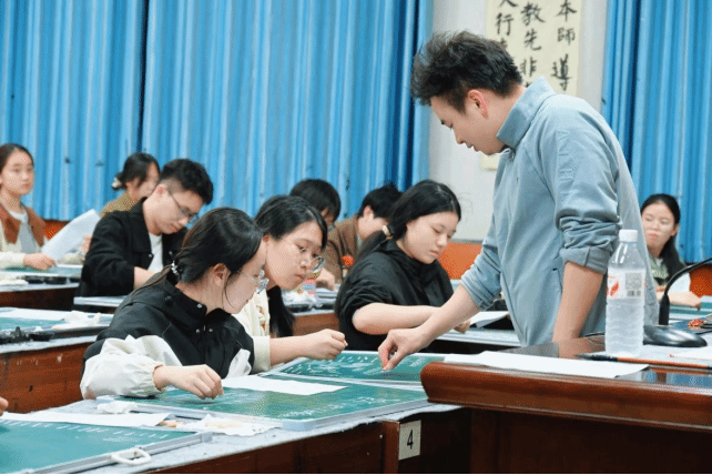 为确保教学实效,易老师课前精心准备字帖范本,清晰打印并分发给每位学生,为临摹学习提供便利。在理论讲解后,课程设置充足的实践环节,让学生及时巩固所学知识。易老师不仅进行集中讲授,更深入学生中间开展巡回指导,耐心纠正执笔姿势和运笔方法,通过现场示范实现精准辅导。
