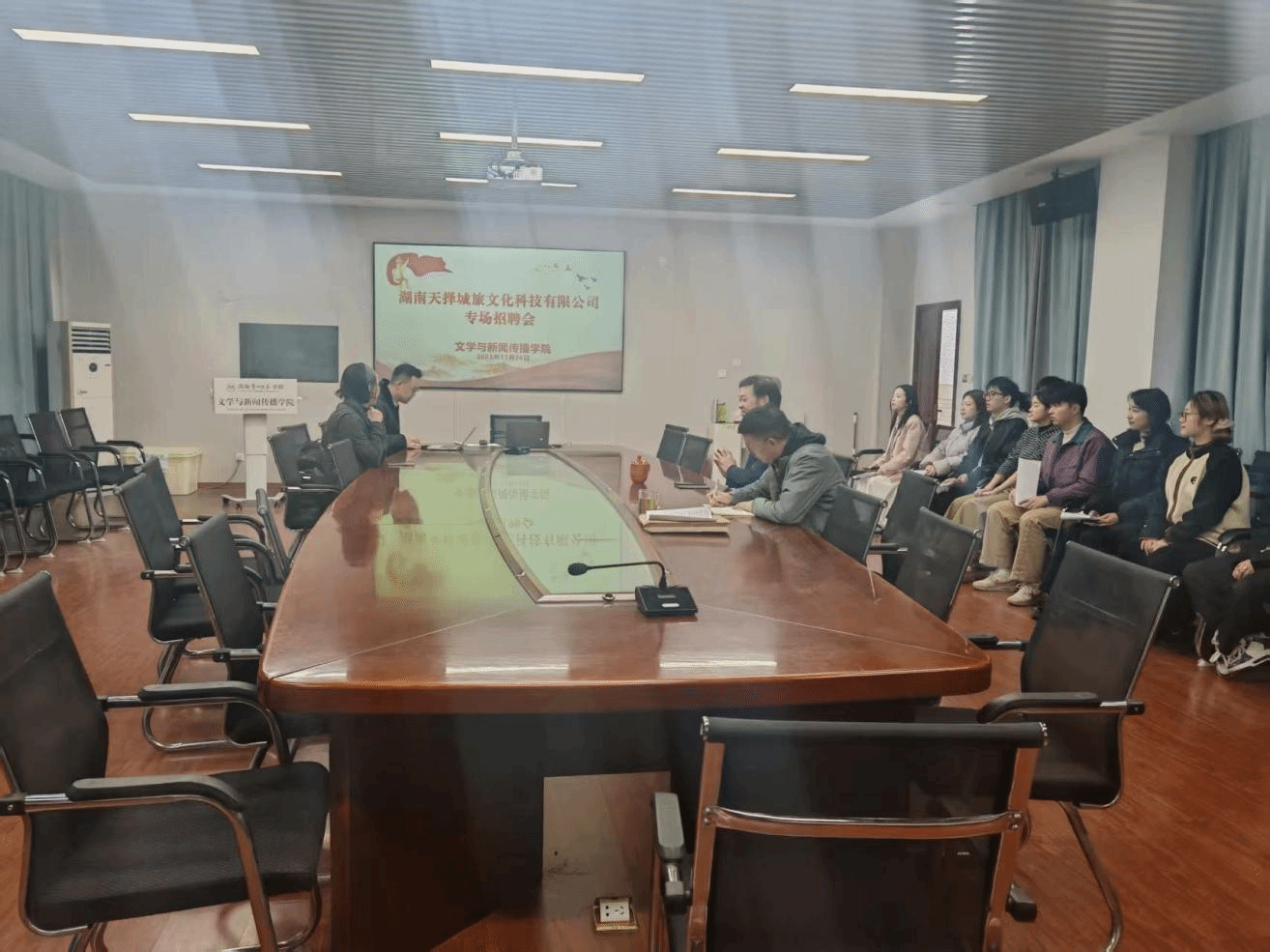 为深入推进毕业生就业工作,服务广大毕业生便捷就业、高质量就业,搭建广大毕业生与优质用人单位的交流平台,11月26日上午,我们特邀湖南天择城旅文化科技有限公司在玉衡楼201举办专场招聘会。院党委书记刘立勇、院党委副书记李豪杰亲临现场指导,毕业班辅导员李倩、就业专干安炜成及来自太阳成集团122cc、音舞院、电信院的 20 余名毕业生参加。