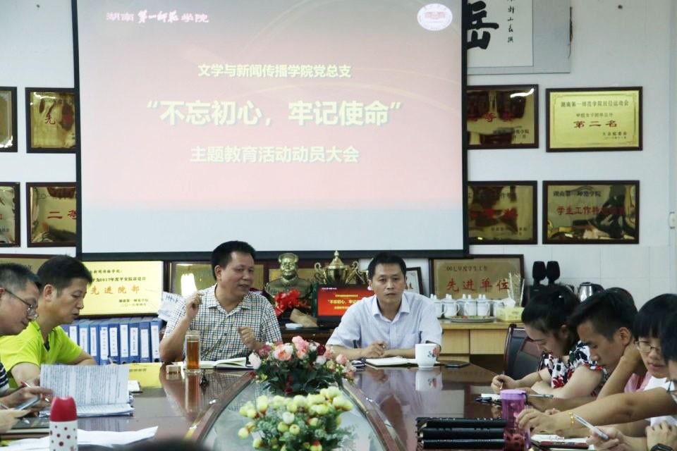 欧阳书记结合学校“不忘初心、牢记使命”的主题教育会议精神和学院工作实际,对学院主题教育工作进行全面部署。为确保主题教育扎实有效,提出了三点要求:一是思想上一定要高度重视,每一位党员要切实把本次主题教育活动列为党员学习要点、党员生活重点、党员工作的重点。二是全面按实施方案开展,以“四个清单”的管理模式整体推进本次主题教育活动:第一,制定学习清单,主动阅读相关书目和文章,依托“学习强国”平台不断更新知识储备,同时做好学习记录;第二,完善调研清单,以处级干部为重点,结合自身的工作范围展开调研;第三,列出问题清单,结合问题自查和他查,明确核心问题及其解决方案;第四,做好整改清单,对照自查和他查中发现的个人问题及时进行整改。三是以主题教育活动为契机,抓好我们党支部的“五化”建设,形成学院党总支总览全局,党支部书记带头落实,全体党员共同发力的工作格局;各党支部对标“五化”建设的各项要求,加快建设进度,准备迎接达标评估,力争全部达标。
