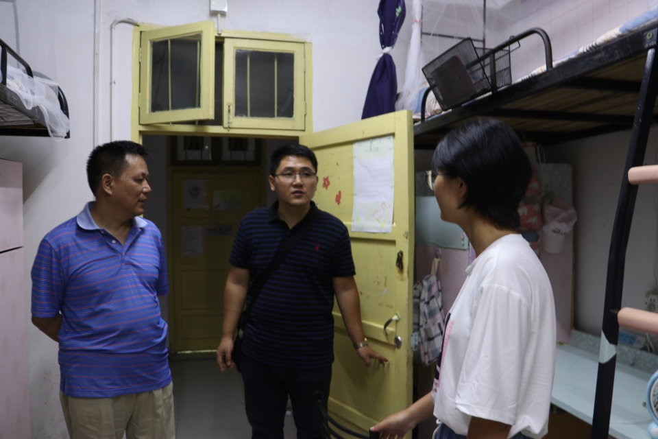 欧阳副书记和全体学工办老师、学生干部分组进入我们学生公寓,对门窗水电、消防通道等基础设施实行检查,做到不留盲区和死角。在检查过程中,老师们对宿舍卫生、用电安全以及防火防盗等诸方面进行详细检查,对发现的问题现场提出并反馈给有关部门予以整改。经检查,我们安全形势良好,开学各项准备工作均已到位。