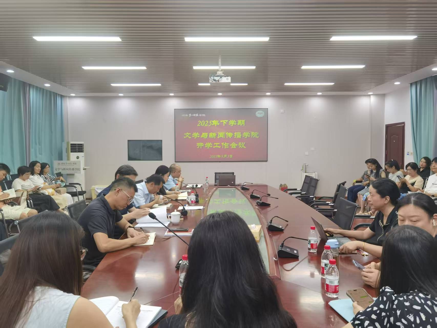 9月5日上午,文学与新闻与传播学院在玉衡楼201召开2025-2026学年秋季学期开学教职工会议。会议由学院党委书记刘立勇主持,围绕“谋篇十五五 描绘新蓝图”主题,分析研判形势,总结布置工作,凝聚全院上下智慧和力量,助力学院高质量发展。学院领导班子成员和全体教职工参加了会议。