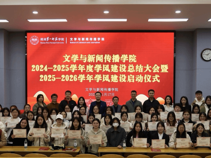 我们“学思并进、知行合一”的学风传统深厚而严谨,与学校“千年学府、百年师范”的辉煌历史紧密相连。今后,我们将继续积极对标学校人才培养新形势、新任务、新要求,充分发挥先进典型的示范引领作用,激励广大同学赓续一师光荣传统,让优良学风成为学生成长的鲜明印记,让学风建设内化为师生的共同价值追求和自觉行动,推动形成狠抓落实、勇于担当、善于创新的学风建设工作局面,在学校建设特色鲜明的师范大学的征程中贡献文传力量。